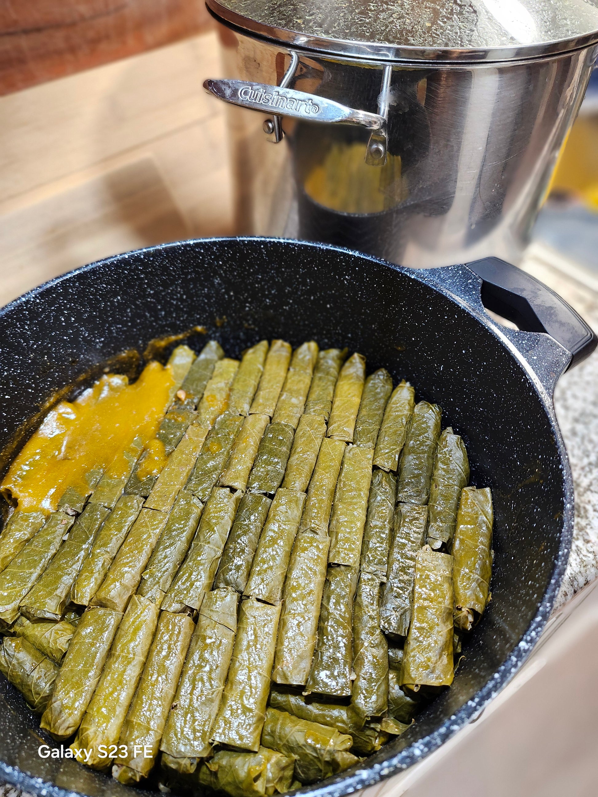 Tender large kousa (stuffed zucchini) hand-stuffed with seasoned rice and ground beef, paired with our carefully rolled grape leaves, cooked low and slow for rich, comforting flavor.